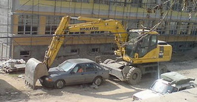Hahaha what in god's name possessed that guy to put the excavator at that position, maybe the guy from the car owned some money.